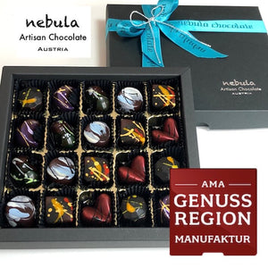 Raffinierte Kompositionen aus feinster belgischer Schokolade mit Früchten, Kräutern und Gewürzen aus regionalen Zutaten: Die handgefertigten Schokolade-Pralinen von Nebula Chocolate aus dem niederösterreichischen Perchtoldsdorf wurden mit dem Gütesiegel AMA GENUSS REGION ausgezeichnet und bescheren kulinarische Genussmomente.
